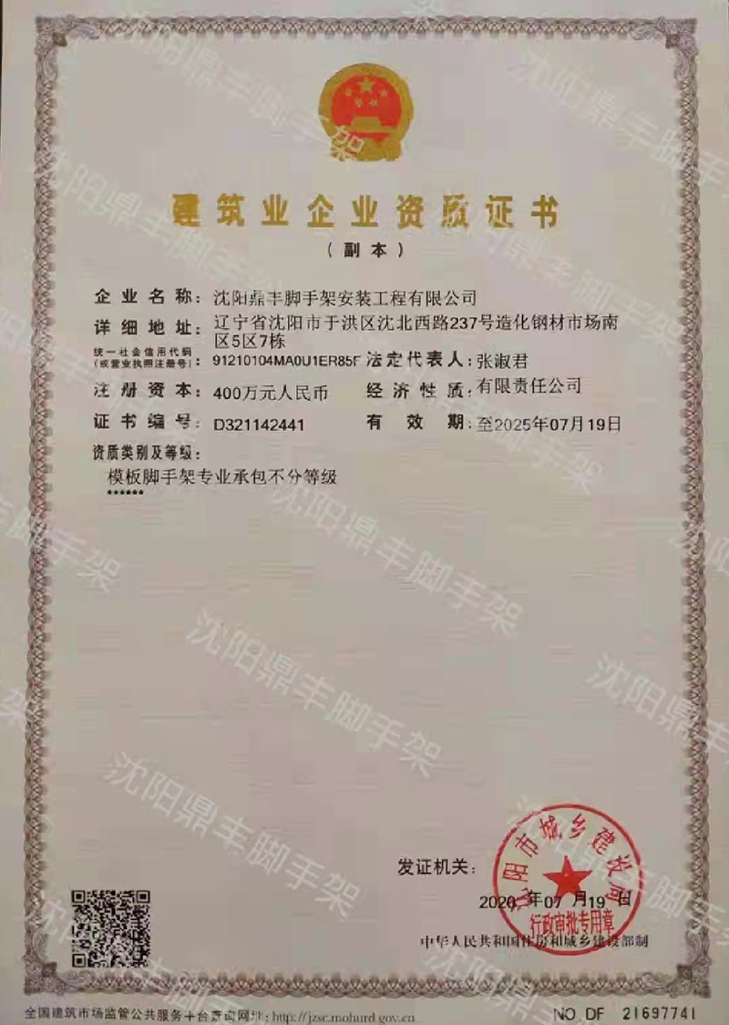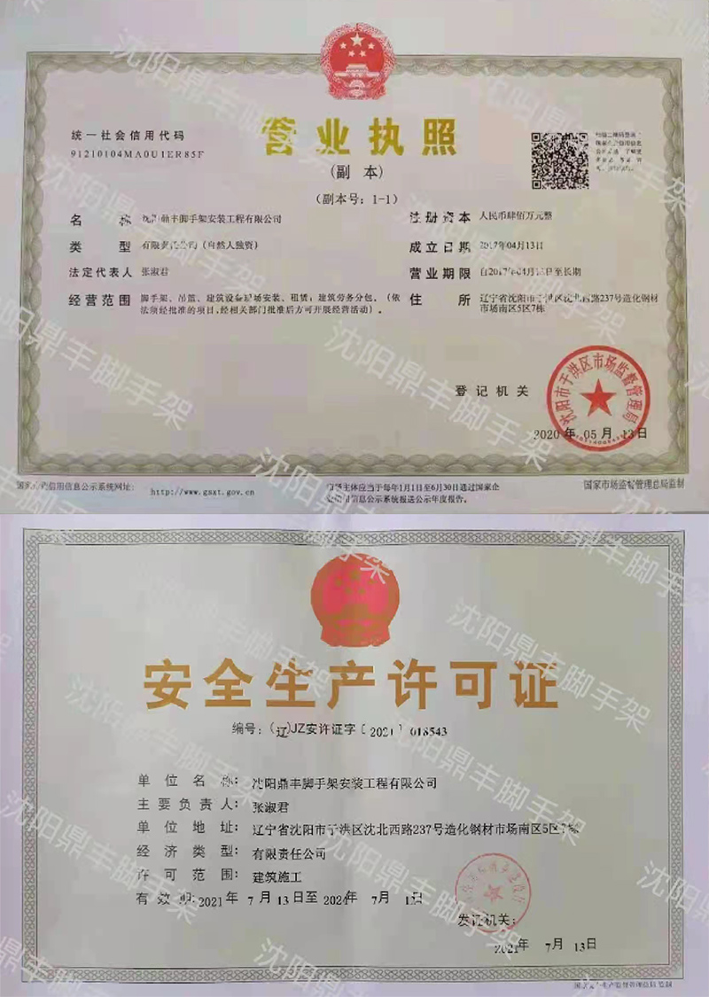 沈陽鼎豐腳手架安裝租賃公司主要租賃:鋼管、扣件、跳板(木、鐵)、U托、碗扣、移動(dòng)腳手架、門式腳手架、盤式腳手架等服務(wù)項(xiàng)目;我公司現(xiàn)有有鋼管3000余噸,扣件100萬套,跳板5萬余塊,移動(dòng)腳手架2萬余套,包括裝飾公司、幕墻公司、工程安裝公司、公共服務(wù) 單位和一些直接用戶。主要施工項(xiàng)目有:樓盤、酒店、賓館、寫字樓、體育館、歌劇院等各種商業(yè)公共設(shè)施的內(nèi)外腳手腳。
